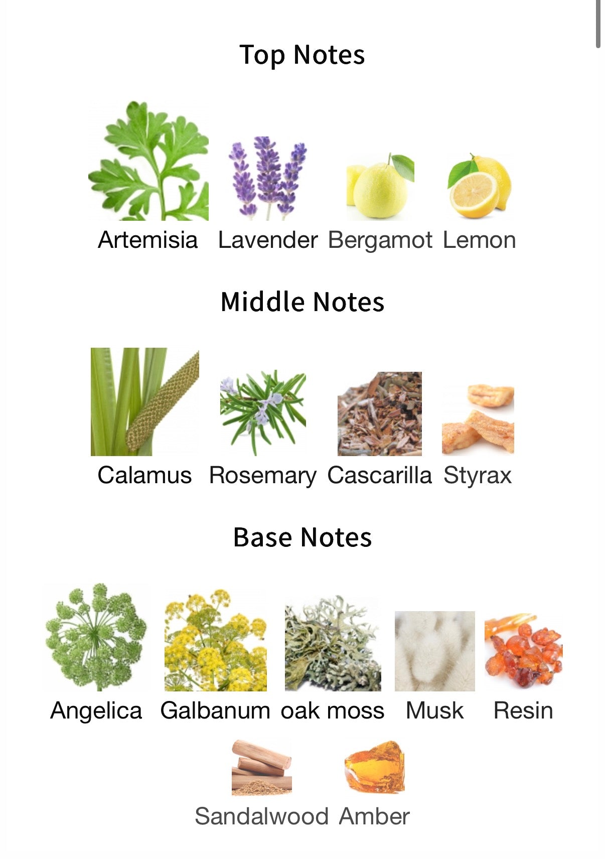 Top: Bergamot, Artemisia, Lavender, Lemon