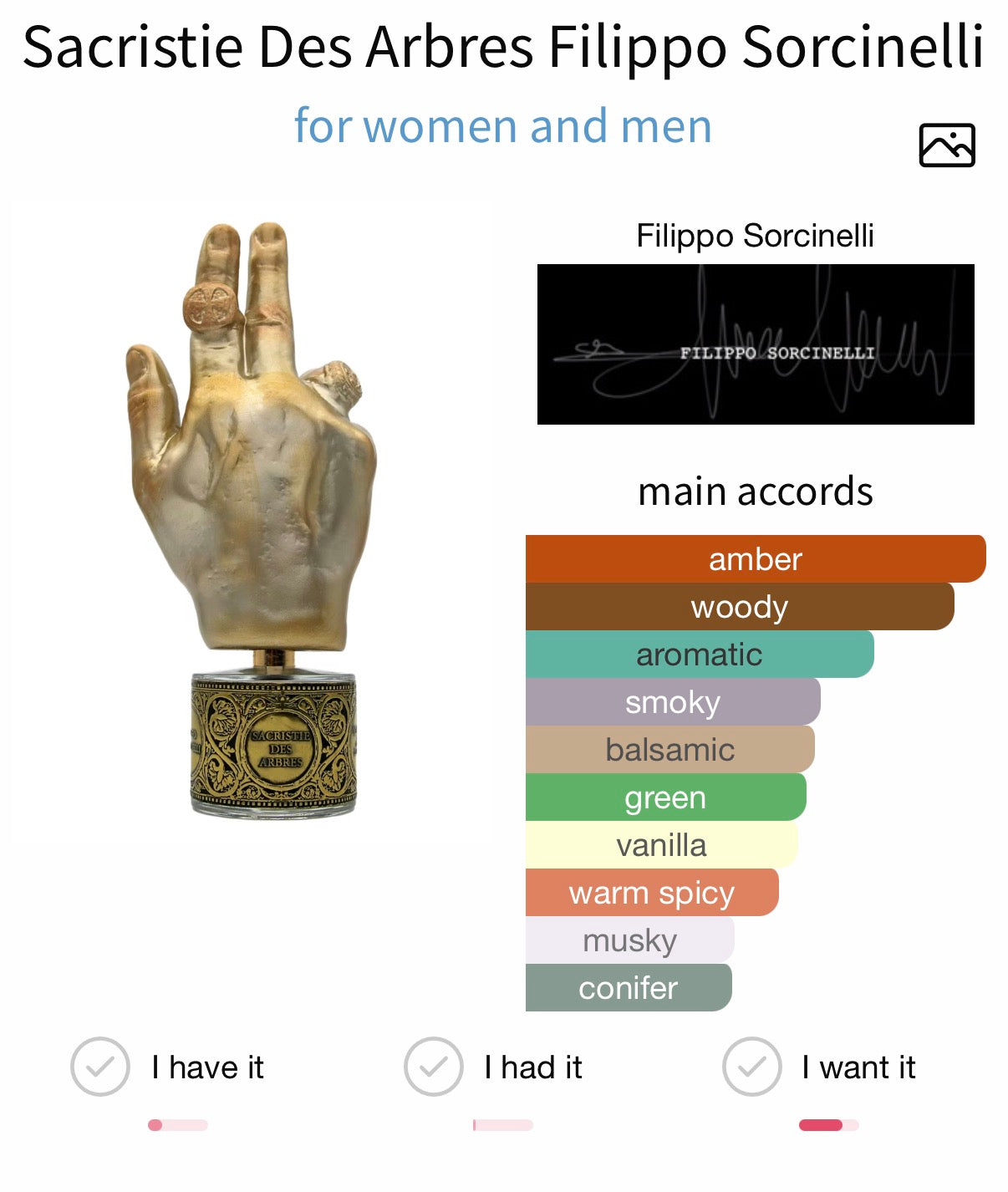 Filippo Sorcinelli Sacristie des Arbres (Sacristy of Trees) is an extrait de parfum that offers a spiritual and meditative sensory journey inspired by the serene beauty of a sacred forest space. It is designed to evoke the calming, peaceful essence of trees and nature, intertwined with religious incense traditions.